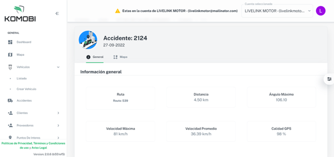 Clicando sobre el ID del accidente tendremos la siguiente información: