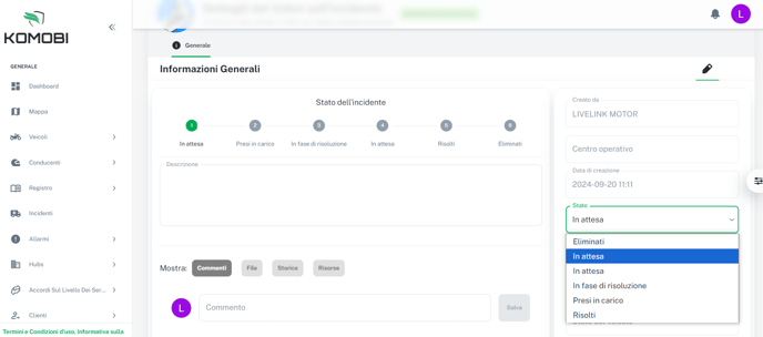 Dovremo semplicemente selezionare lo stato desiderato e successivamente salvare la modifica, informando così il responsabile e aggiornando anche lo stato nell'elenco dei ticket: