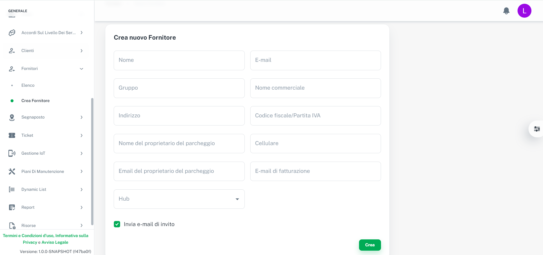 Una volta all'interno di “Crea fornitore”, vedremo la seguente schermata: