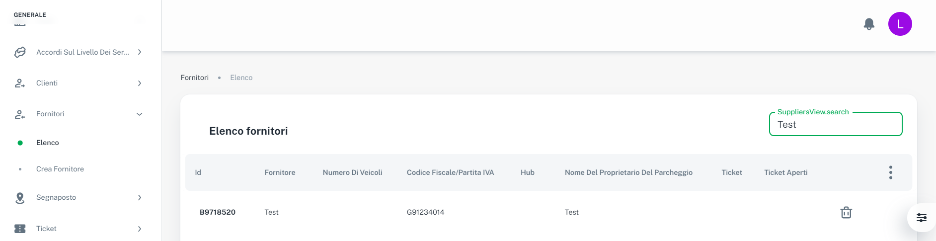 Cliccando su “Crea”, potremo accedere direttamente all'elenco dei fornitori e verificare che il nuovo fornitore sia stato creato.