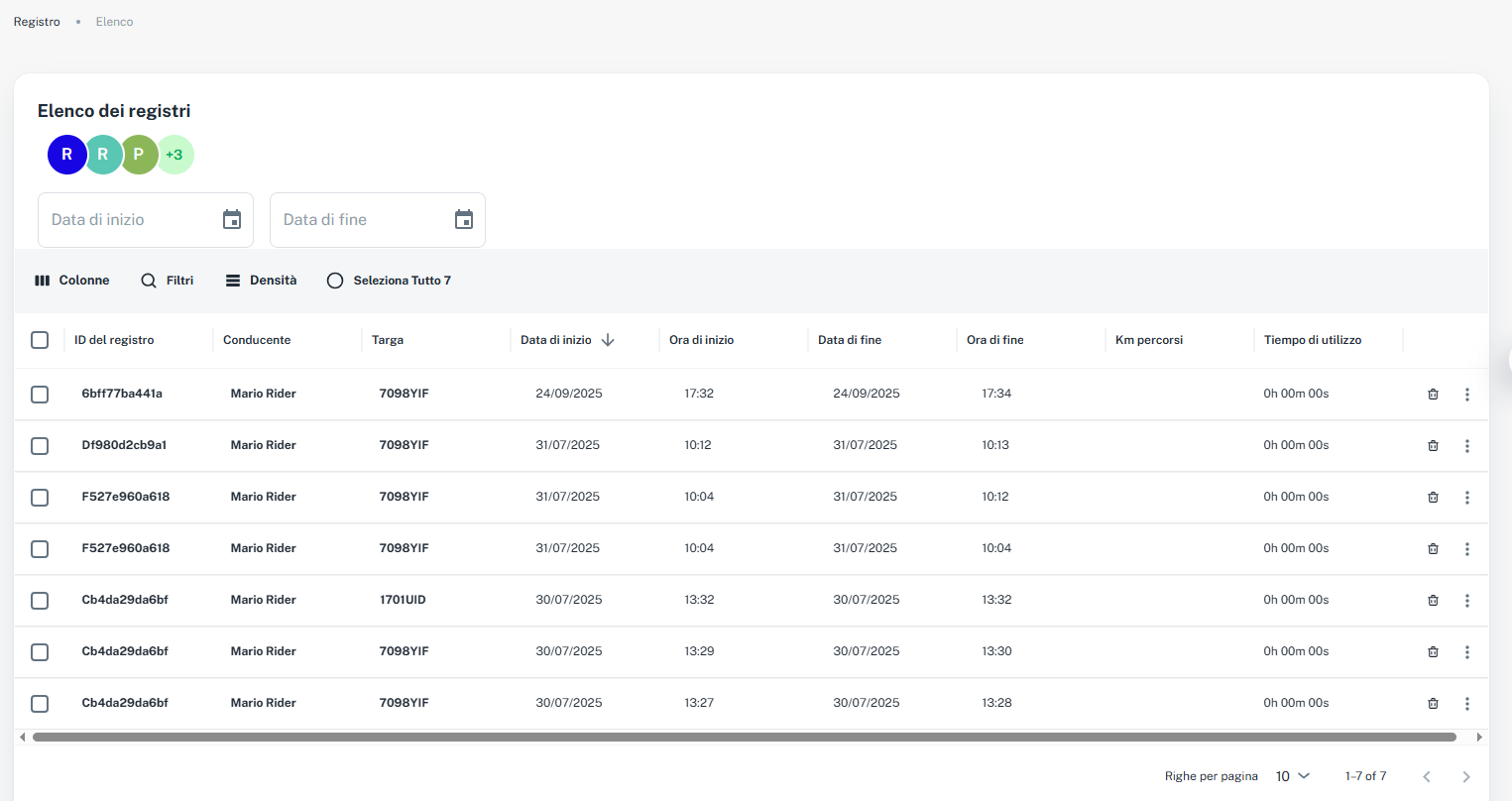 Il Registro delle attività è lo storico consolidato dell’attività della flotta, che mette in relazione conducenti e veicoli, raggruppando ogni voce tramite il relativo ID di registrazione.