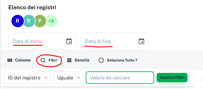 Filtro: puoi anche digitare direttamente nella barra di ricerca l’ID del registro per individuare voci specifiche.