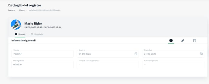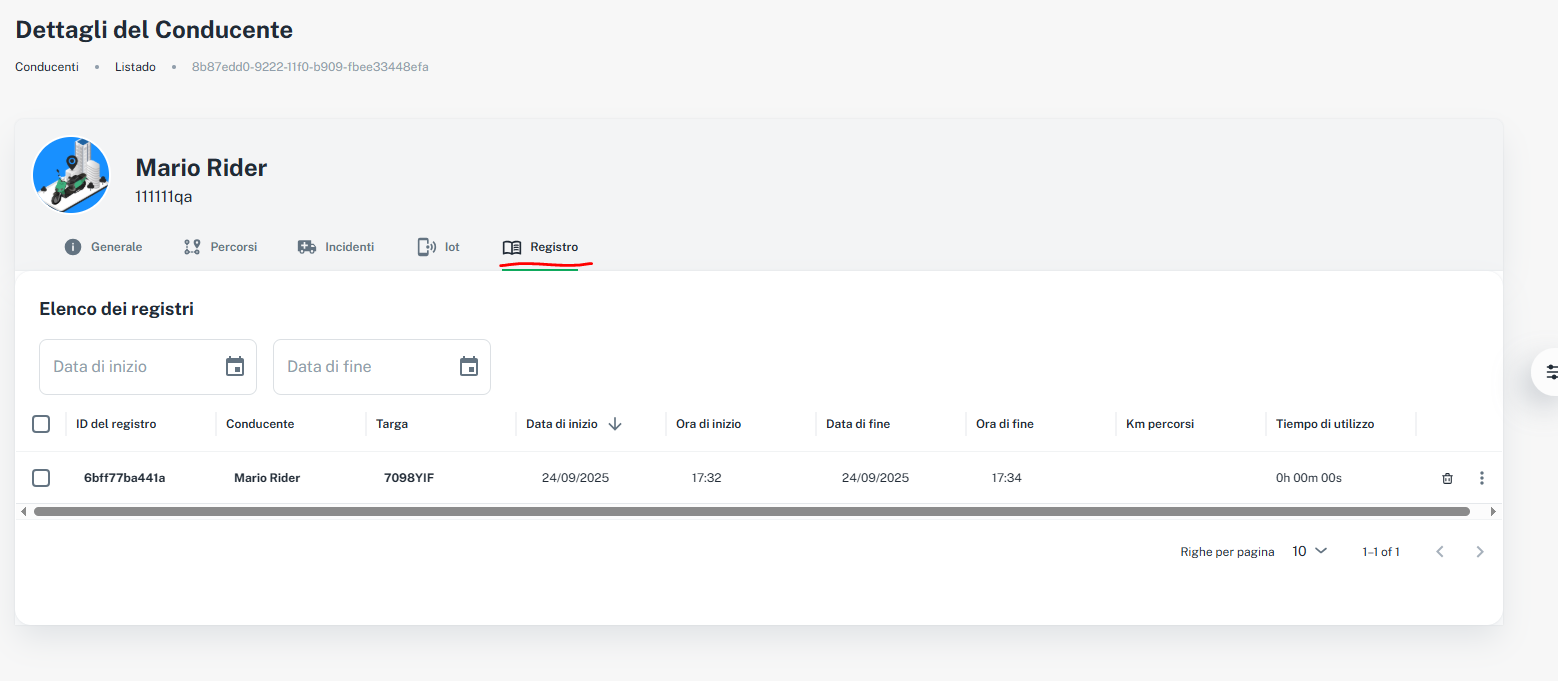 Cliccando sull’ID del registro, accedi al riepilogo della giornata associata a quel conducente e veicolo.