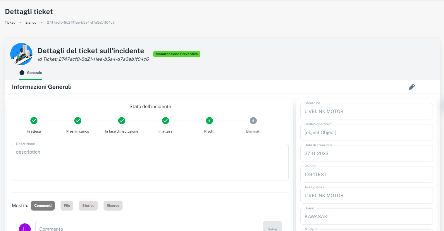 - Stato del ticket