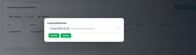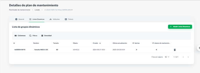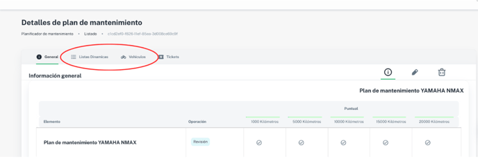 El último paso, sería asociarlo a un vehículo o lista dinámica. De esta forma, cada plan de mantenimiento se vinculará con el vehículo que lo requiera.