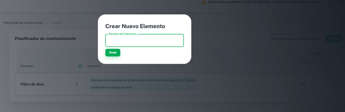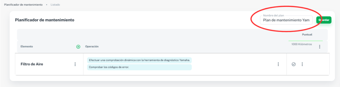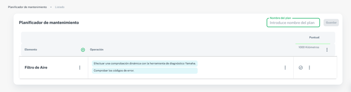En primer lugar, introduciremos el nombre del plan que queramos darle, según el vehículo o vehículos a los que se aplique. Por ejemplo, "Plan de mantenimiento Yamaha NMax 125":