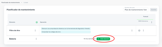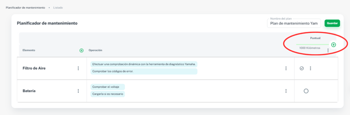 Podremos crear tantos elementos como operaciones deseemos añadir, personalizando así el mantenimiento de cada vehículo o grupo de vehículos.