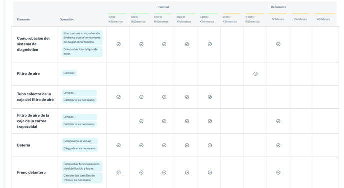 Estas operaciones son las que se llevarán a cabo específicamente para comprobar cada elemento de nuestro plan de mantenimiento.