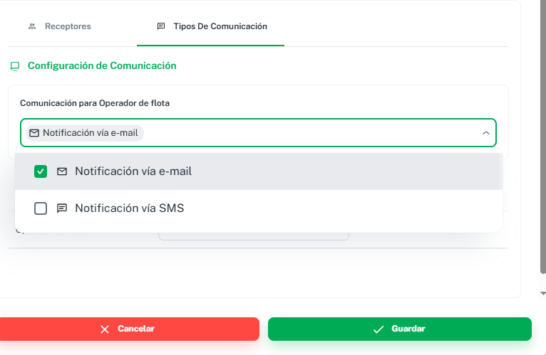Una vez seleccionemos quién recibirá los avisos, tendremos que configurar el canal de comunicación que queremos utilizar, esto lo haremos en tipos de comunicación: