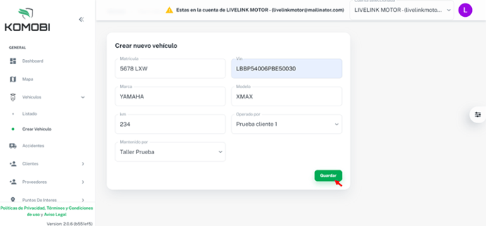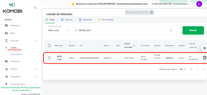 Al darle a guardar, ya podremos ir directamente al listado de vehículos y podremos comprobar que se ha creado ese nuevo vehículo: