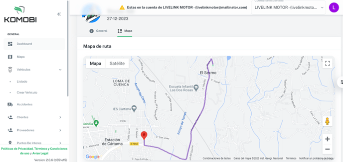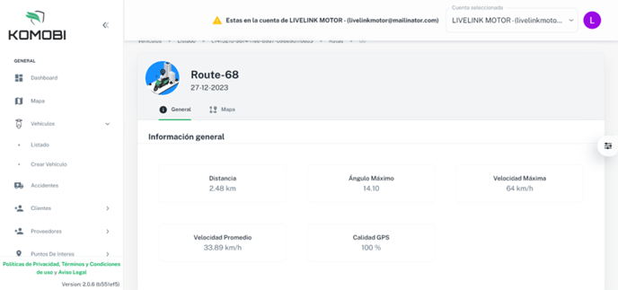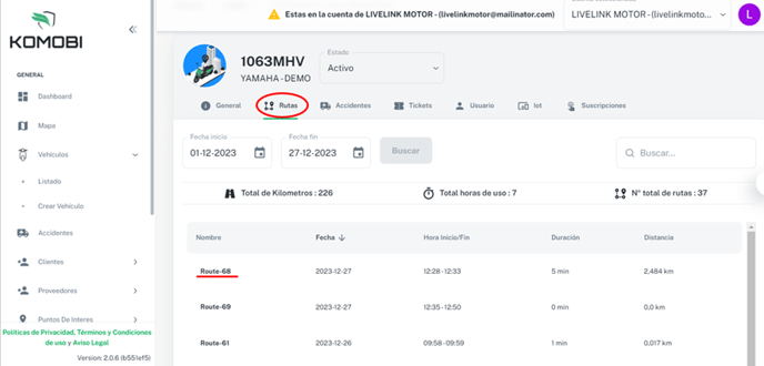 Entrando en cada vehículo podremos ver el detalle de cada ruta de manera individual: