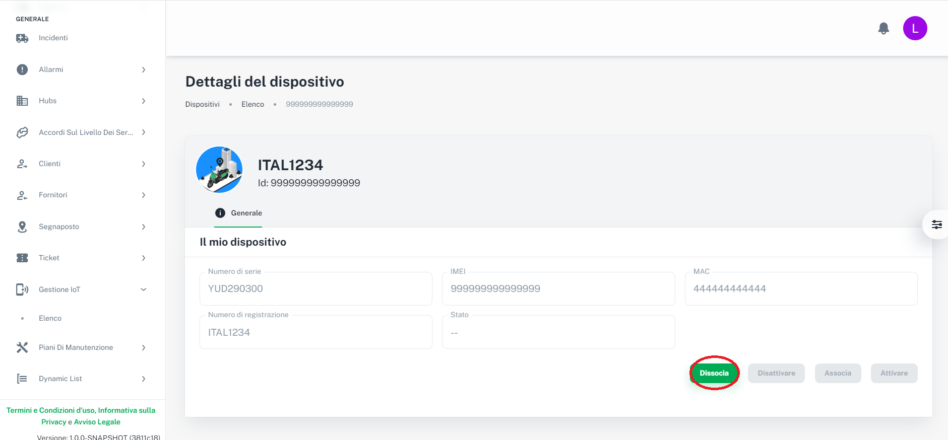 Nell'elenco facciamo clic sull'ID del dispositivo che vogliamo scollegare dal veicolo a cui è associato.