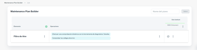 Per prima cosa, inseriremo il nome del piano che vogliamo assegnargli, in base al veicolo o ai veicoli a cui si applica. Ad esempio: "Piano di manutenzione Yamaha NMax 125".