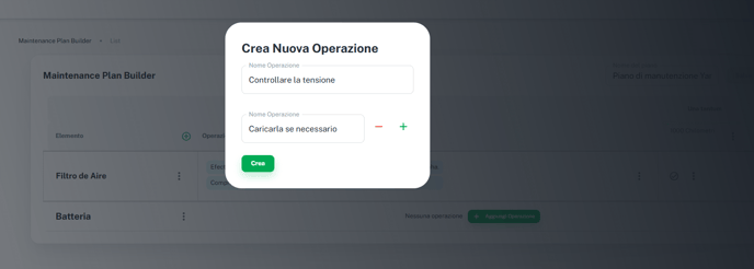 Potremo creare tutti gli elementi che desideriamo, aggiungendo le operazioni necessarie e personalizzando così la manutenzione di ogni veicolo o gruppo di veicoli.