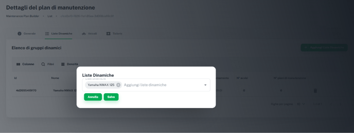 L’ultimo passo sarà associarlo a un veicolo o a una lista dinamica. In questo modo, ogni piano di manutenzione sarà collegato al veicolo che lo richiede.