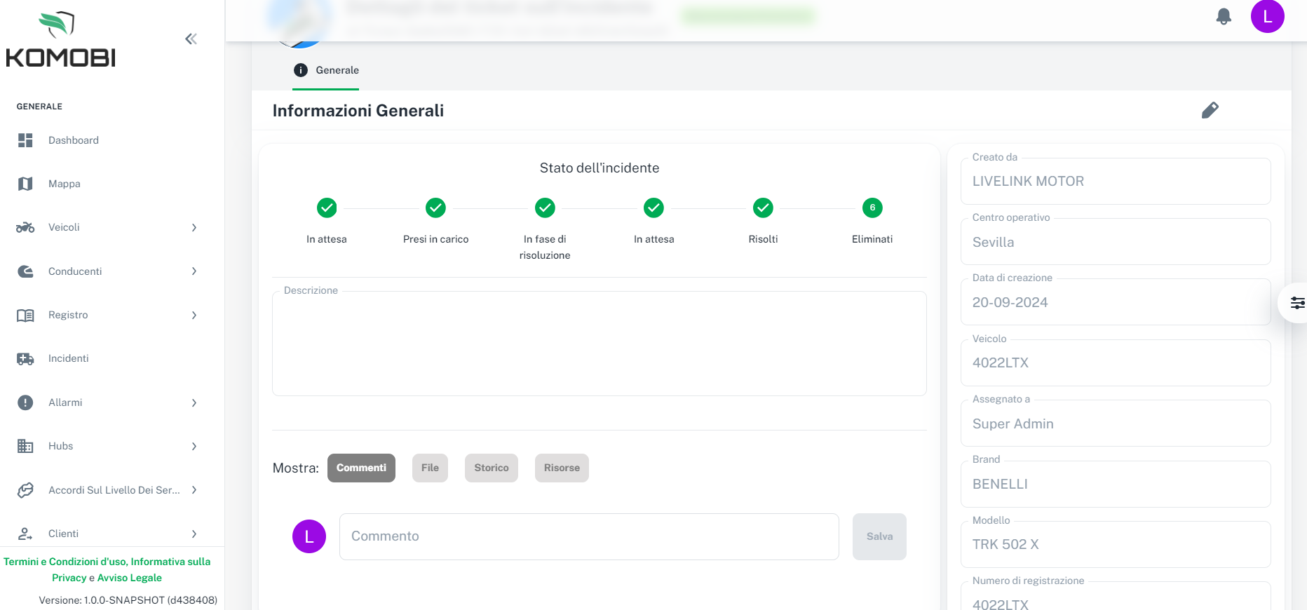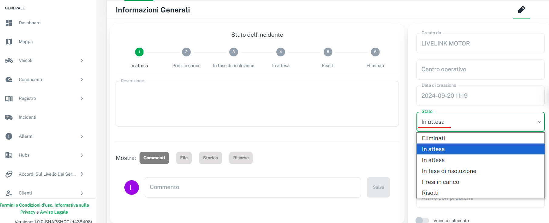 In questo caso, dallo stato "in attesa" del ticket, potremo selezionare lo stato "elimianti". Una volta selezionato e salvato il ticket, vedremo che lo stato del ticket cambia automaticamente in "eliminati".